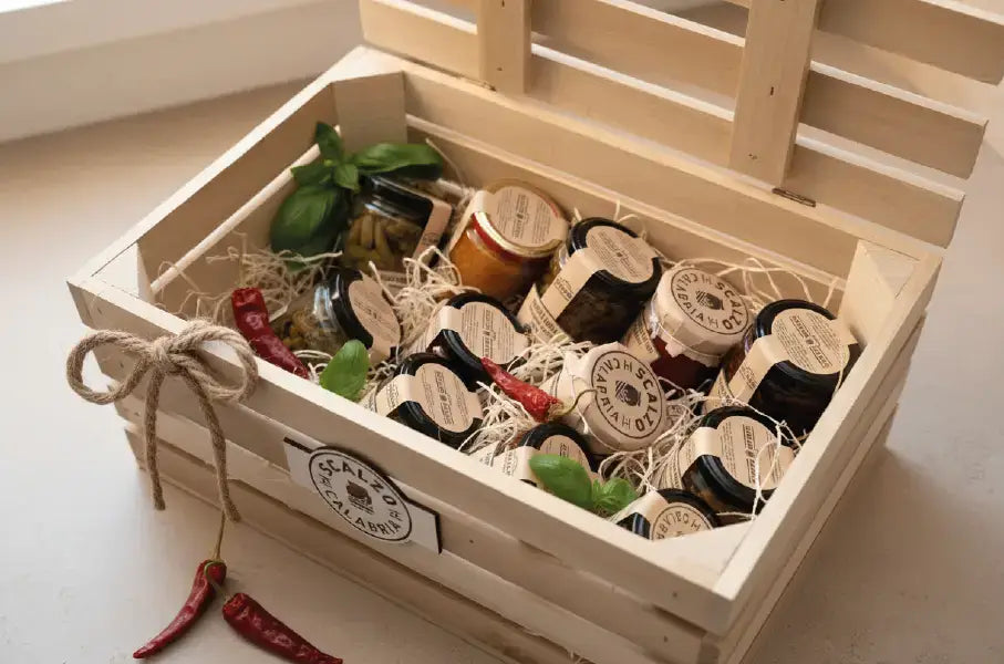 Idee regalo eleganti e curate con i nostri migliori prodotti calabresi. Perfette per ogni occasione.